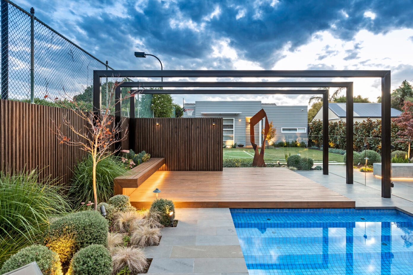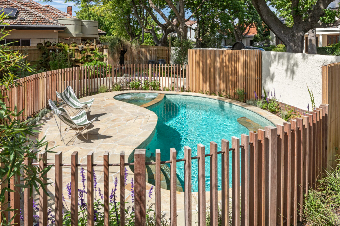 "With such complex curves and challenges on this project, Landart have delivered a seamless finish from the ground up. Paving patterns, grout joins and finishes were exceptional. The clever idea to have the paving slab engineered to avoid a caulking gap along the pool shell was a wonderful addition showing no signs of movement or cracking. The use of caulking joints, when required, displayed fantastic consistency in thickness, neatness and were well considered. The timber pool fence has been designed to regulate the 'sagging' often displayed with the movement of natural timber slats. Building this fence on site illustrates the thought that went into its construction and the remarkable workmanship shown overall by the Landart team."