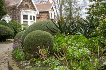 The plants mix well to dress the house well but the tree ferns are the stars of the space, providing a canopy for the thriving front garden under planting.