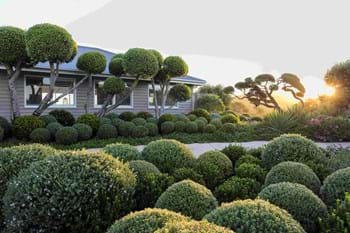 In this design, the plants take centre stage, outshining the hardscape elements to become the true stars of the landscape. Jane Jones Landscapes has skilfully used shape and texture to create visual intrigue, with cloud-pruned tea trees showcasing their twisted, gnarly trunks and taming the harsh coastal conditions to soften the landscape.