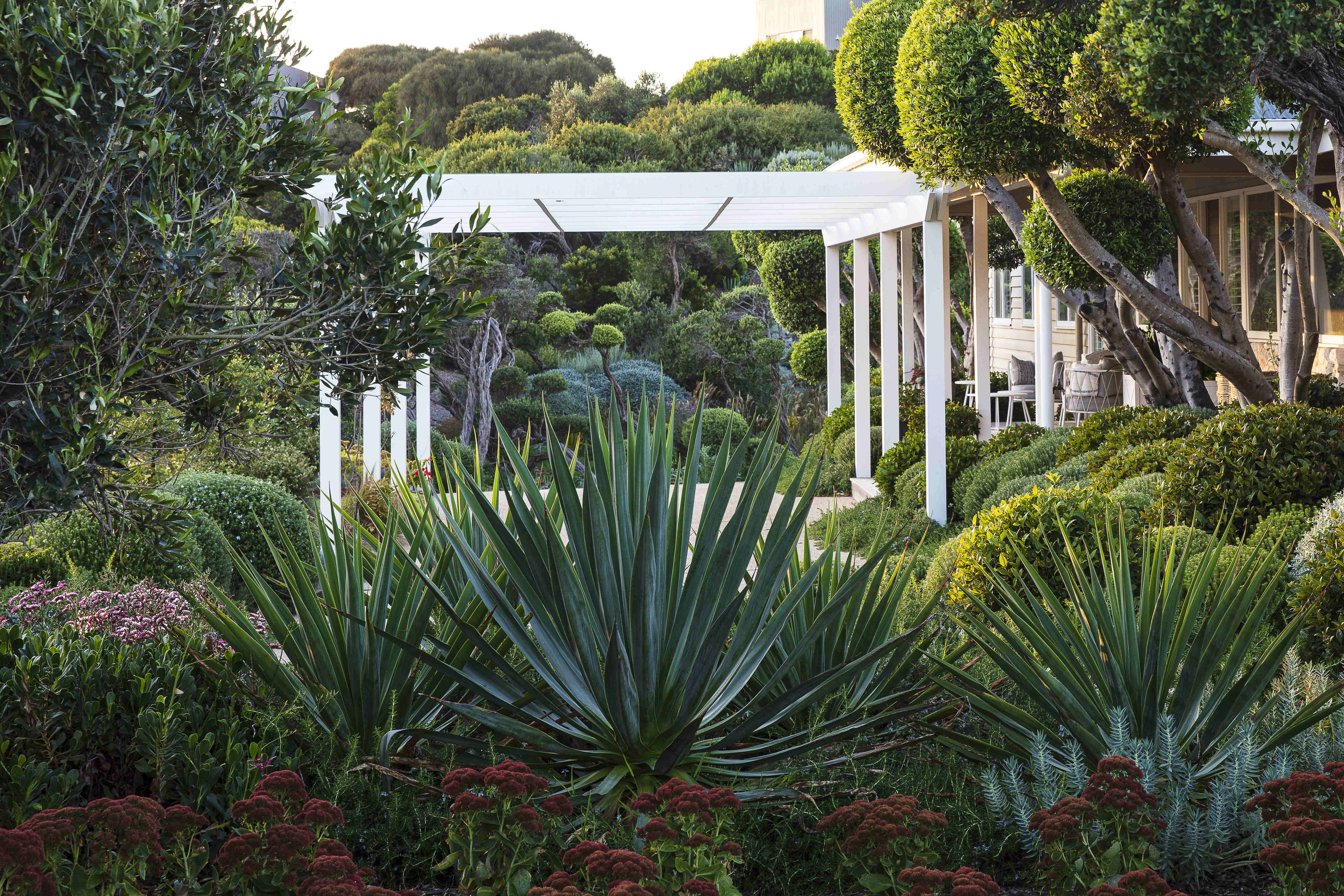 Manicured and informal plantings are paired beautifully, creating a harmonious blend of form, texture, and colour that brings this coastal landscape to life.