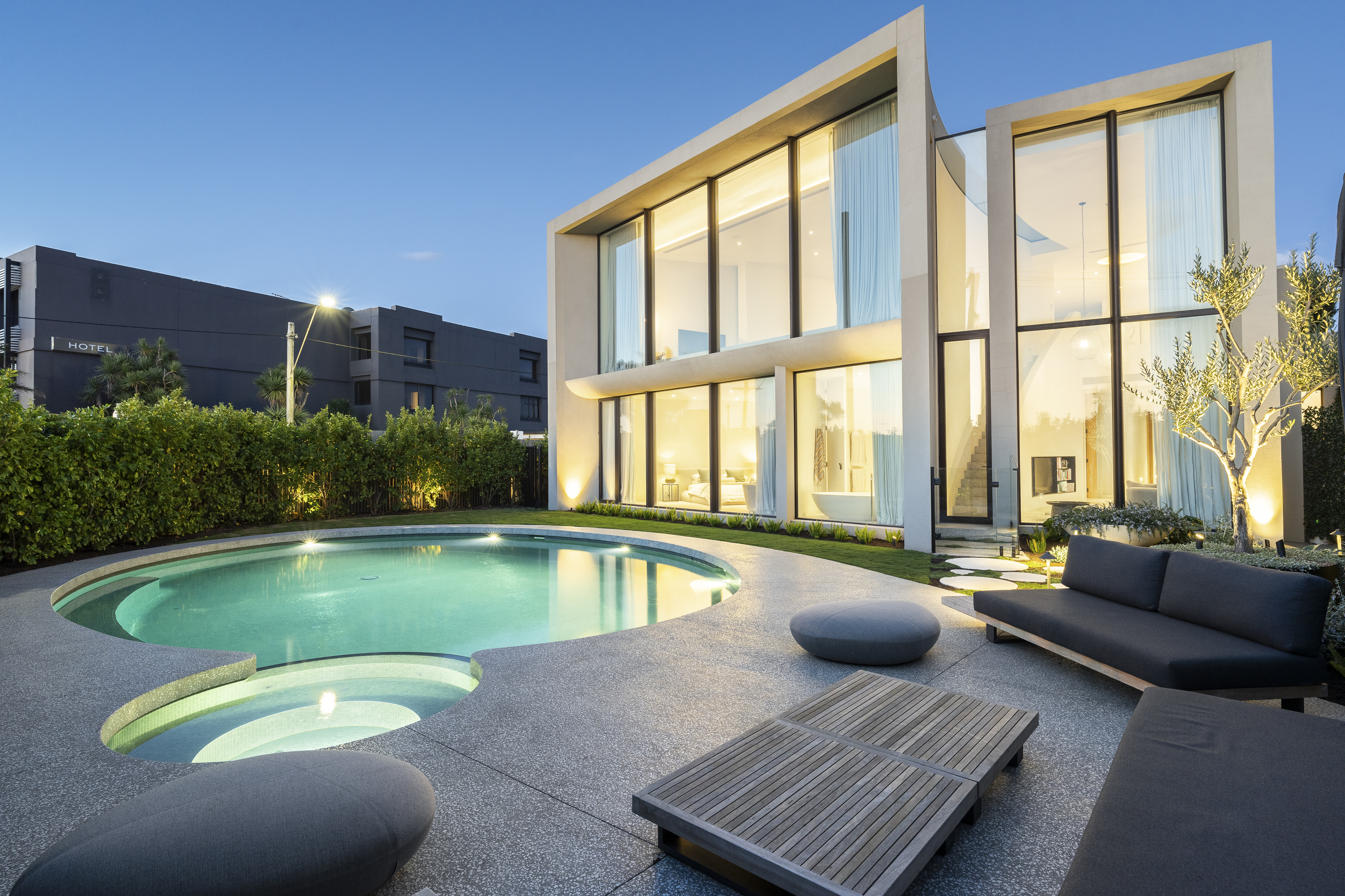 A stunning pool and spa that embraces complexity to create a seamless connection between indoor and outdoor living.